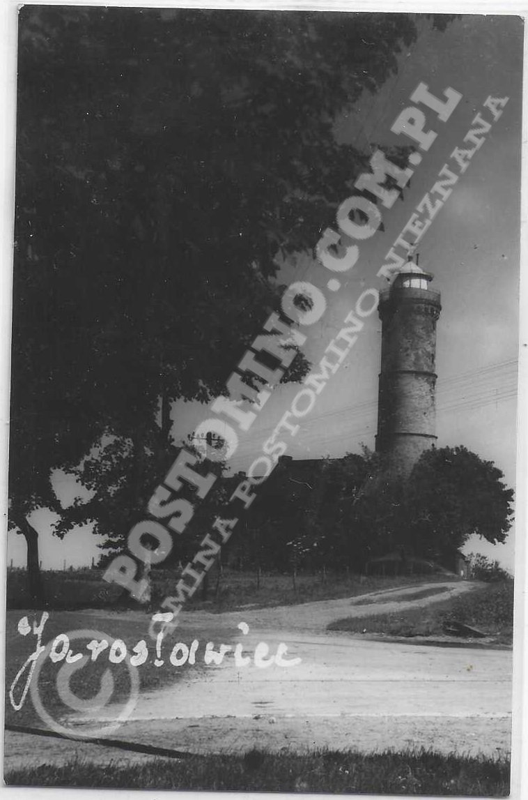 Jarosławiec skrzyżowanie ulic, Zdjęcie latarni morskiej, oraz skrzyżowanie obecnych dróg Szkolnej, Nadmorskiej i Bałtyckiej.