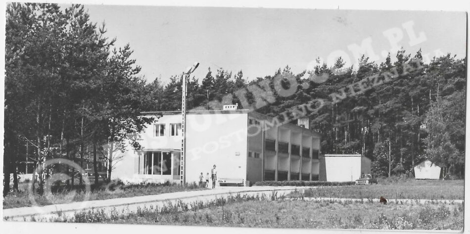 Powiatowy Ośrodek Sportu, Jarosławiec Powiatowy Ośrodek Sportu, Turystyki i Wypoczynku, pocztówka z widokiem na budynek hotelowca. „Miłe i serdeczne życzenia z nad morza przesyła Zuza.”