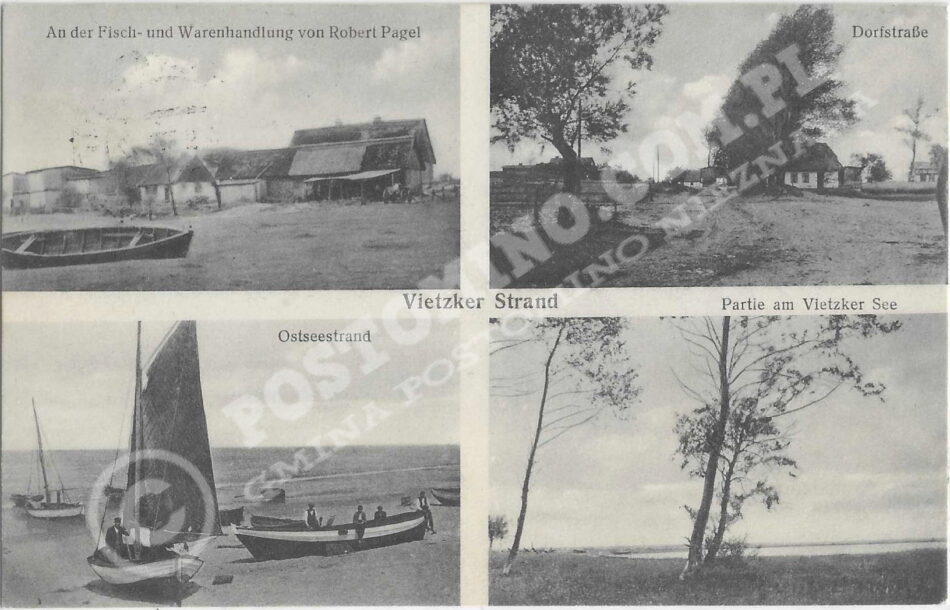 Oryginalny napis: Vietzker Strand – An der Fish und Warenhandling von Robert Pagel – Dorfstrasse – Partie an Vietzker See – Ostseestrand