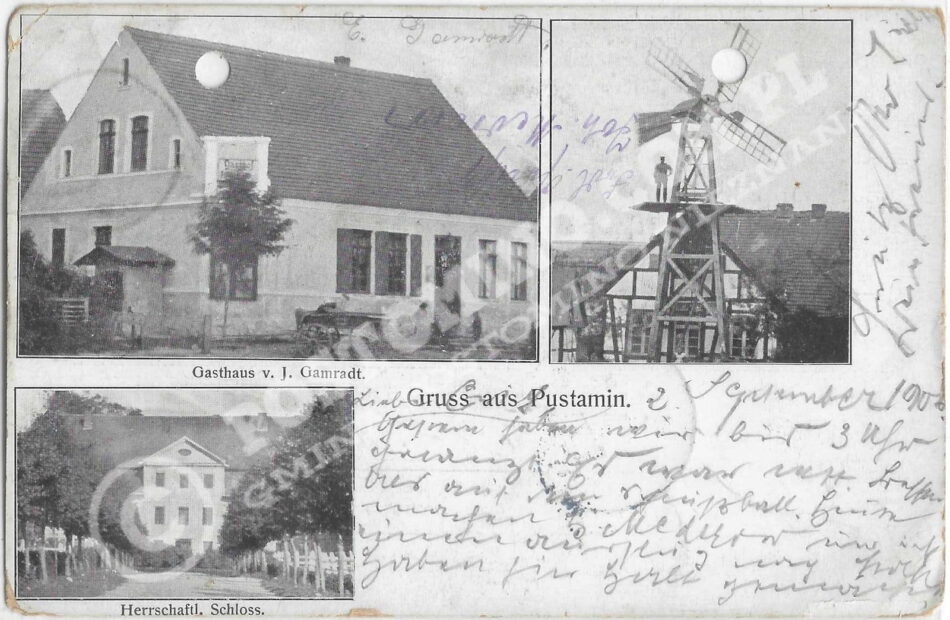 Oryginalny napis: Gruss aus Pustamin, Kreis Schlawe – Schloss